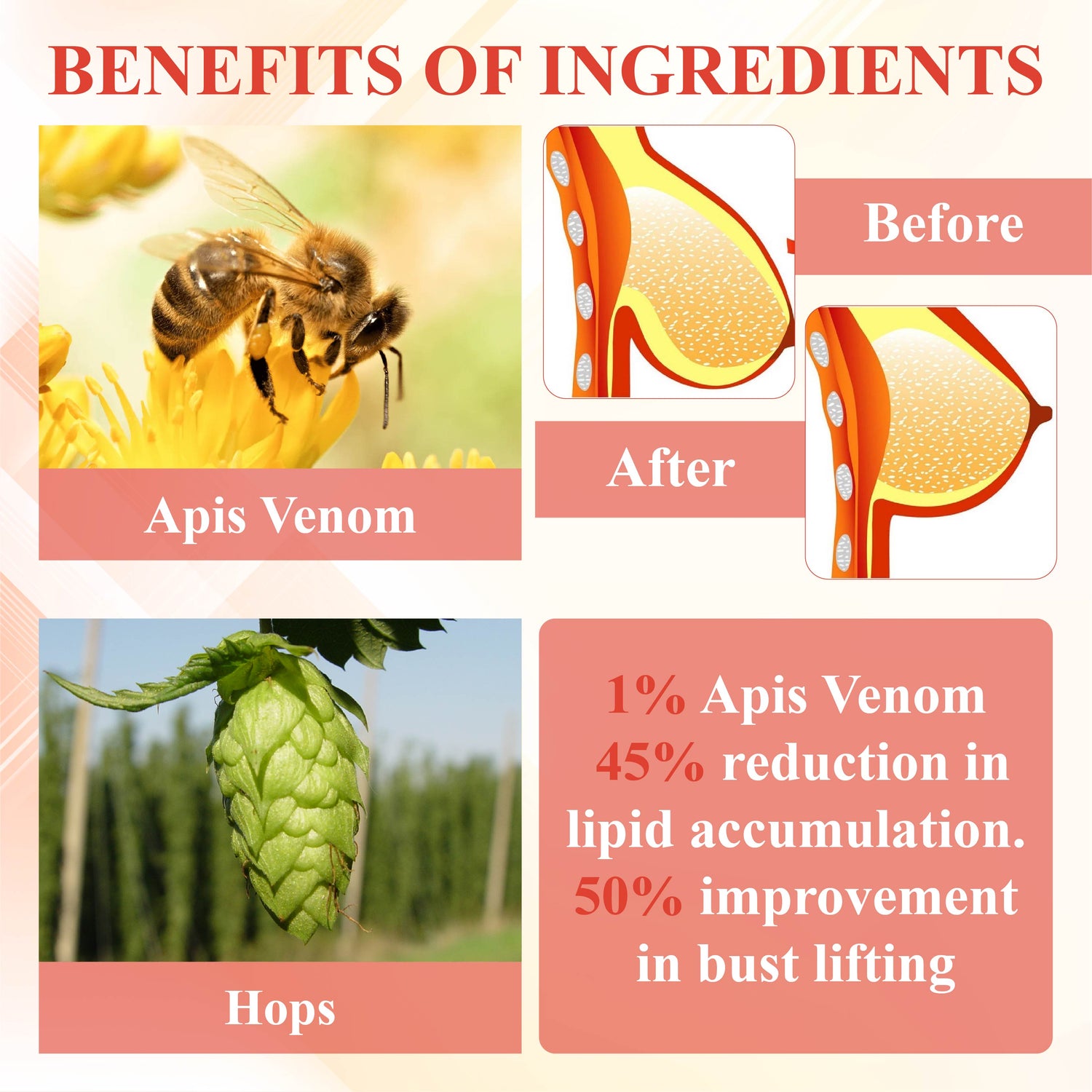 TightenLift™ BreastSkinLift Nasal Inhaler Stick combines powerful ingredients to promote skin firmness and health. Apis venom stimulates collagen production, improving skin elasticity and reducing puffiness. Hops, rich in phytoestrogens, enhances skin texture and supports lymphatic flow, while Ginger Root Extract boosts circulation and detoxification. Lemon Essential Oil, Panax Notoginseng Extract, and Menthol work together to refresh the skin, reduce inflammation, and promote a toned, lifted appearance.