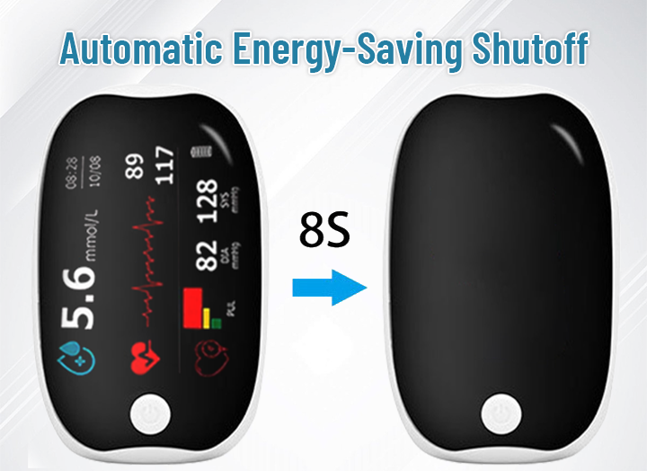 The LAOZIK™ Blood Glucose Monitoring Device uses advanced non-invasive technology to measure your blood glucose, heart rate, and blood oxygen levels without the need for painful finger pricks. Simply insert your finger into the device, press the button, and within 5-8 seconds, you'll get accurate results.