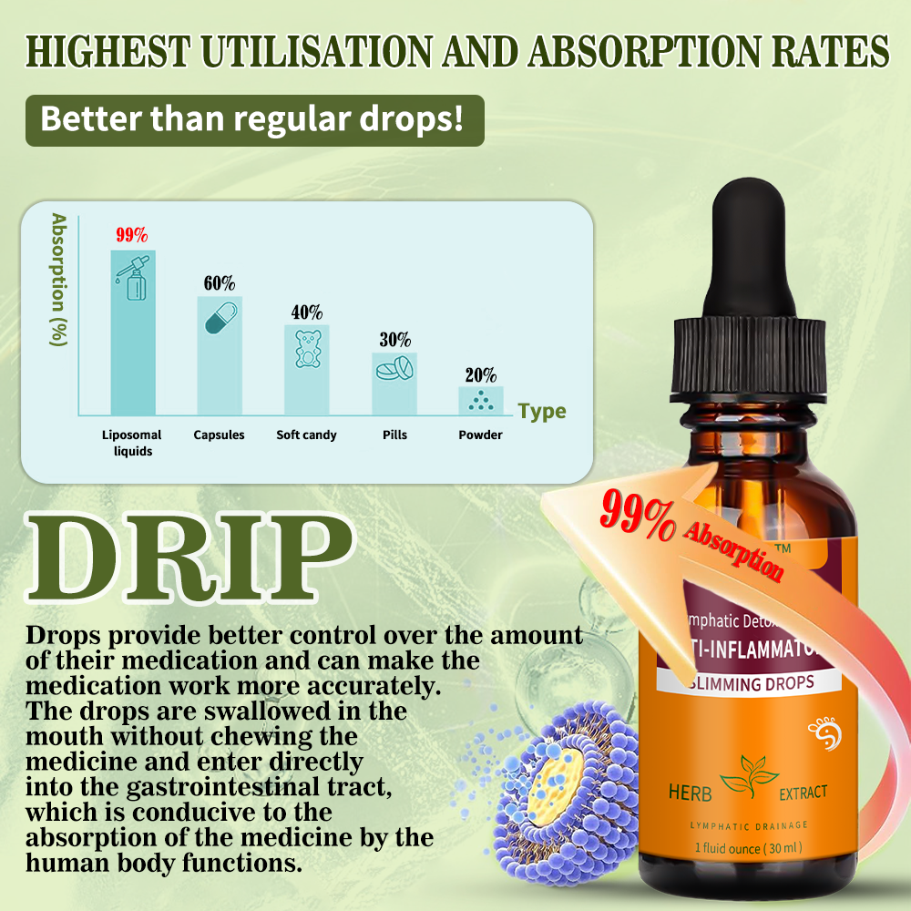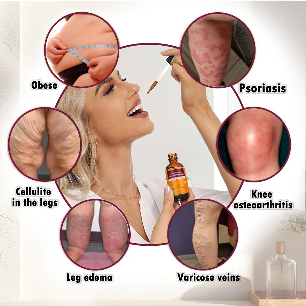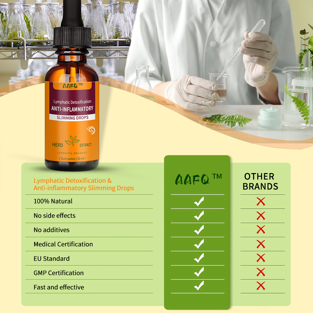 AAFQ™ Lymphatic Detoxification & Anti-inflammatory Slimming Drops is an innovative therapy rich in various natural herbal extracts specifically designed to enhance the health of the lymphatic system. They help promote lymphatic circulation, alleviate symptoms related to swelling, inflammation, and fluid retention, while also supporting detoxification and fat burning. Additionally, this drops can effectively relieve issues such as varicose veins, muscle tension, foot fatigue, cramps, neuropathy, and chronic pain. AAFQ™ Lymphatic Detoxification & Anti-inflammatory Slimming Drops perfectly combine health and comfort, enhancing your overall well-being.