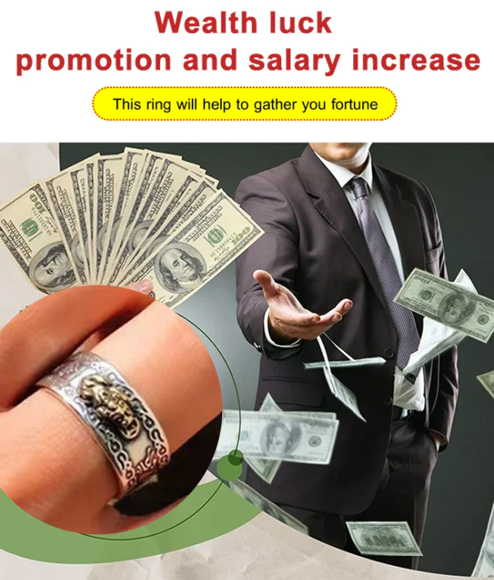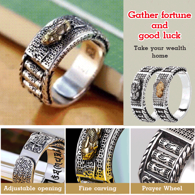 【Bring good luck for you!】 Vintage Pixiu Six-syllabled Sanskrit Mantra Prayer Wheel Ring.