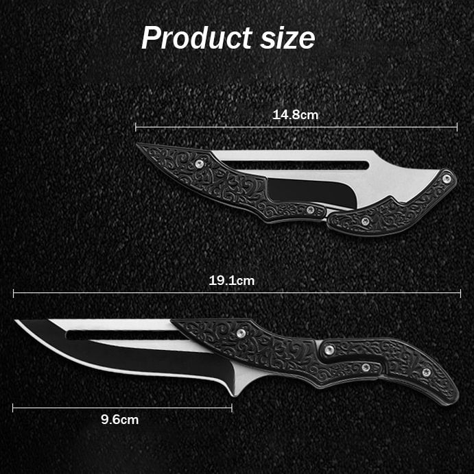 【Mechanical Structure】unique modeling, innovative operation mode, break the traditional idea, make a new look! The triangular part at the end of the handle can act like a movable clip, and the blade can be opened with a slight push of the hand. Likewise press the triangular tail of the handle and pull the blade with a little force.