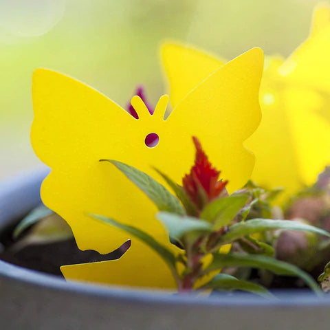 - 【DECORATIVE AND IMPROVED DESIGN】 New shorter "neck" version to prevent flexing. They are ready and easy to use. Just peel them apart by lifting the end of the triangular base and stick the traps into the soil, or hang them using the twist ties.